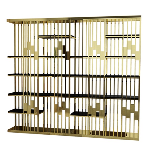 后现代简约不锈钢钛金书架_不锈钢书架书柜厂家生产图