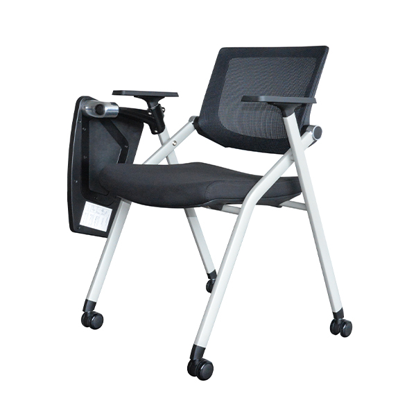 HY-130D-black 多功能培训椅 HY-130系列是一款多功能培训椅,背架采用全新进口PA+玻纤,环保防火,背垫铝合金连接,稳固牢靠,而且采用舒适头奇特网,视觉美观,靠感舒适;靠背具有倾仰功能,能够有效缓解背部疲劳,且其椅架为喷涂架,具备金属质感,稳固性强的同时,还可以折叠收纳,有效节省会议培训室的空间,便利人们会议培训生活。