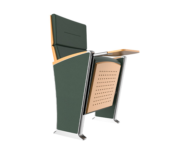 4.下藏式防恐写字板:写字板固定方式为机械原理高强度螺栓,使写字板链接部位越用越结实,不会出现松弛现象写字板链接部位越用越结实,不会出现松弛现象。回复机构通过阻尼气杆联动回收,扶手和写字板向上倾斜6.5度保证书写自然状态,写字板打开回收时自带消音功能,不可有反弹力与噪音出现。写字板托板采用优质铝合金材料经模具一体压铸成型,铝合金托板尺寸规格长度为:201±10mm,宽度为:84±10mm,厚度为:21±10mm。写字板旋转轴套采用全新优质PP+25%GF玻纤增强材质经模具一体注塑成型,写字板面板采用优质高密度硬木经模具加压成型,写字板面板尺寸规格长度为:318±10mm,宽度为:242±10mm,厚度为:12±10mm